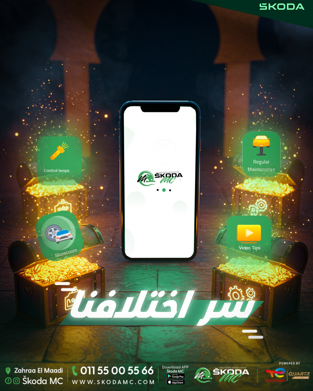 Don't worry..if you hear any strange sound because you are afraid for your car You can now download a Skoda application in Maadi Center.. and send us, and the service officials will answer you with all professionalism. If your car is a Skoda, you can rest assured. Škoda Maadi Center .. The Center Of Trust